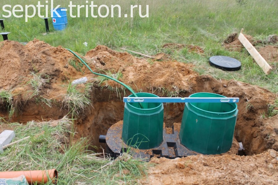 - Септик Термит устанавливается в котлован. Отводящая от емкости труба укладывается под наклоном не менее 1 см на метр и при необходимости утепляется.